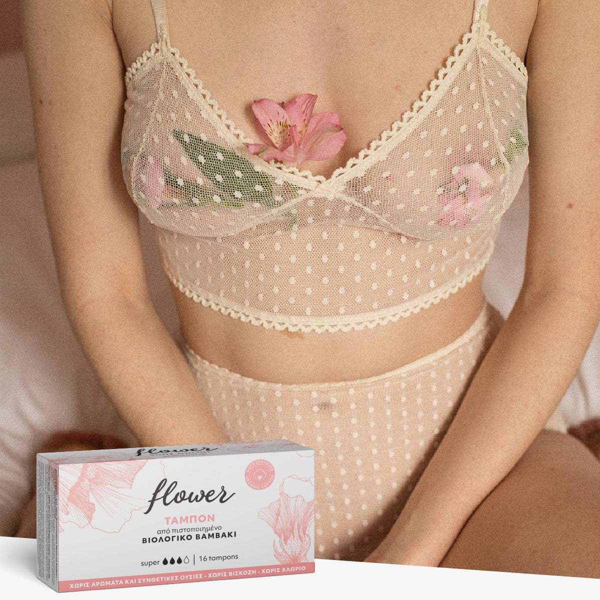 Έτσι λοιπόν, τα προϊόντα Flower δεν επιβαρύνουν τον πλανήτη με πλαστικό, επειδή πολύ απλά δεν περιέχουν πλαστικό. Το προστατευτικό τους περιτύλιγμα είναι κι αυτό βιοδιασπώμενο, ενώ οι χάρτινες συσκευασίες τους είναι πλήρως ανακυκλώσιμες. Τέλος, το πιστοποιημένο, 100% βιολογικό βαμβάκι που χρησιμοποιούμε στα προϊόντα μας, καλλιεργείται με βιώσιμες μεθόδους και χωρίς χημικά φυτοφάρμακα.